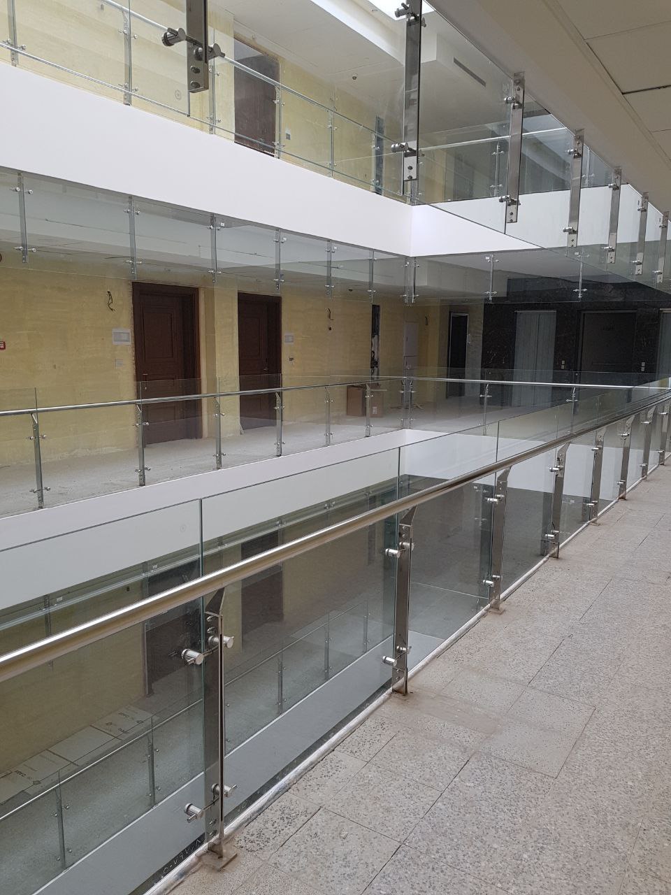 نرده شیشهای کد ۳۰ با دستک استیل، ترکیبی از ایمنی و طراحی مدرن، مناسب راهپله، بالکن و تراس.
